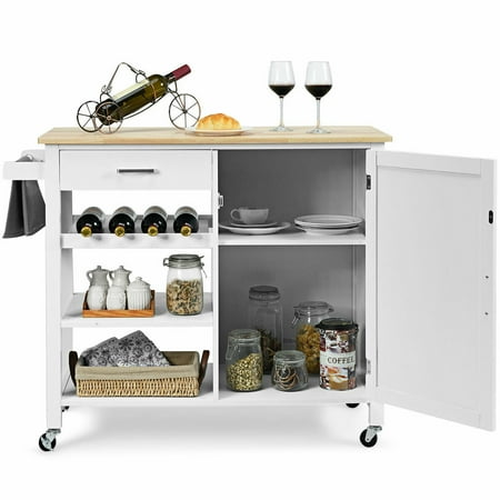 Yaheetech rolling kitchen island with single door cabinet and storage shelf, kitchen cart with drawer on swivel wheels for dinning room/living room, l22xw18xh35 4.7 out of 5 stars 221 1 offer from $109.99 You can even get a portable kitchen island with seating. Portable kitchen islands can provide a wide range of features including drop leaves, butcher blocks, towel racks, wine storage, drawers and cabinets. White wood cabinet shelf microwave cart storage space saver 4 casters kitchen. Shop rolling carts at the container store.